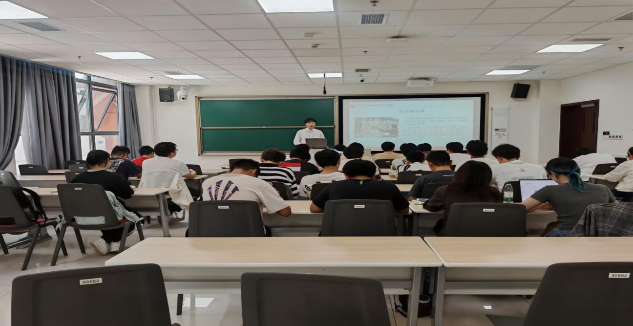 活动开篇,团支书杨绍鹏以“死字旗”为核心,讲述四川民众支援抗战的事迹,阐释抗战时期军民同心的精神内核;随后播放湘江战役纪实视频,通过历史影像展现革命先烈浴血奋战历程,帮助团员们同学们理解伟大抗战精神的深刻内涵。
