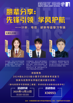 作为利兹学院深耕学风建设、赋能科创育人的核心平台,学术科创基地(以下简称ATIB)始终以“厚植学术底蕴、激发科创活力”为导向,紧扣学生成长需求推进工作。2025年,ATIB通过搭建学术桥梁、强化榜样引领、聚焦科创赋能的递进式培育路径,落地30余场学术活动、50余场朋辈分享,助力学子斩获多项国家级科创奖项,为学院学风建设与科创育人提质增效筑牢支撑。