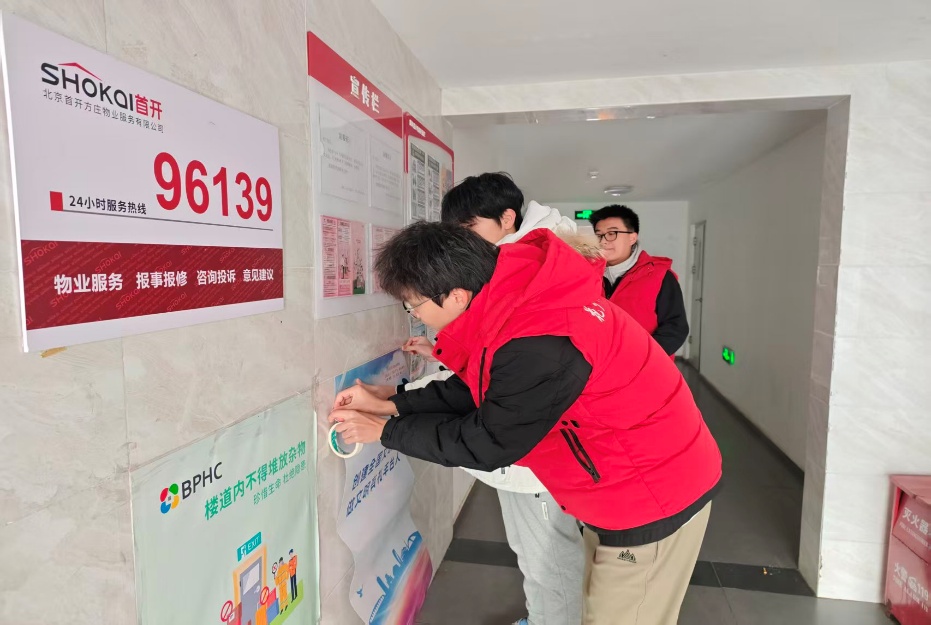 实践队员首先跟随社区工作人员走访社区各处,详细了解郭公庄北街社区的布局特点、居民结构及文化需求。结合传统节气的时令特色,队员们精心设计制作了一系列节气文化海报,海报内容涵盖传统由来、传统习俗、养生要点等知识,版面活泼易懂、图文并茂。随后,大家共同将海报张贴在社区宣传栏、“微笑会客厅”等公共区域,让节气文化融入社区环境,既美化了社区角落,也为居民营造了浓厚的传统文化氛围。
