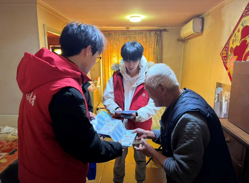 实践队重点开展入户敬老服务,走进社区老年居民家中。队员们主动帮忙打扫房间、整理杂物,用实际行动为老人营造整洁舒适的居住环境;陪老人拉家常、话冷暖,倾听他们的生活趣事与需求,给予情感上的慰藉。同时,结合节气特点,队员们向老人科普冬季养生知识,提醒他们注意保暖、合理膳食。一句句暖心的问候、一次次贴心的服务,让老人们切实感受到社区与实践队的关怀,也让敬老爱老的传统美德在实践中得以传承。