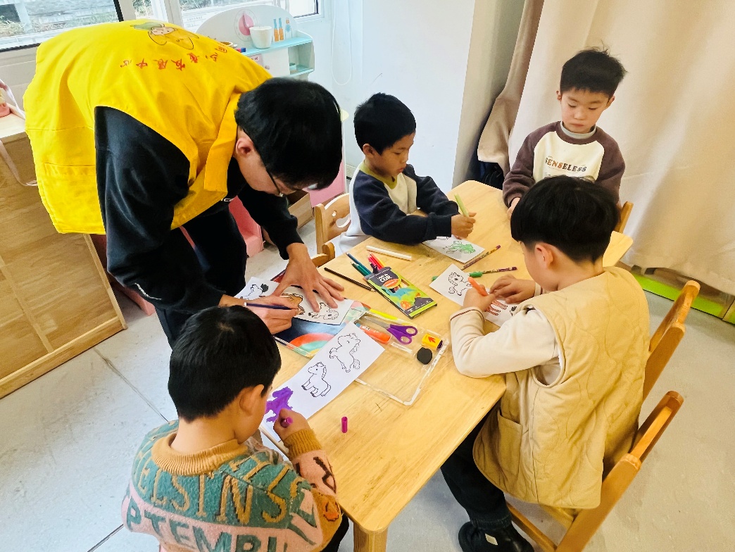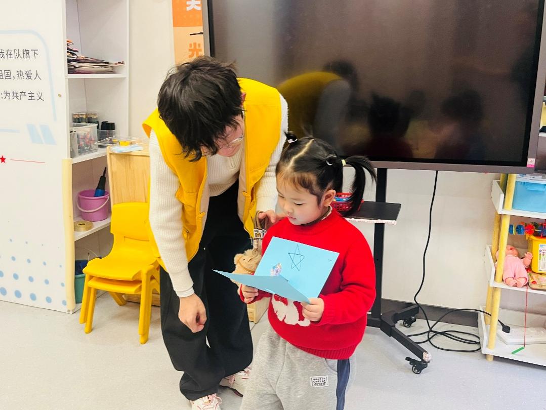 2月11日,实践队联合杭州市青云青少年关爱服务中心走进杭州市儿童福利院,为特殊儿童开展同款小年主题活动。结合特殊儿童的实际情况,队员们对课程设计做了针对性优化,放缓活动节奏、强化现场示范、全程一对一协助,相比社区课堂,更注重陪伴与支持,让孩子们能稳步参与到英语学习和手工制作中。