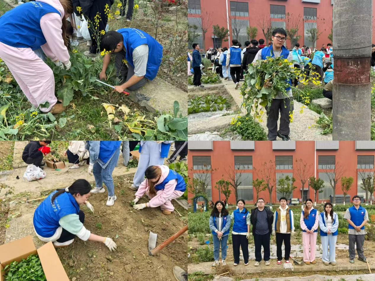 躬耕实践植新绿,劳动育人悟初心。下午,同学们前往校园“开心农场”开展劳动实践活动。现场大家分工协作、配合默契,有的清理过季作物,有的挥锹培土栽种新苗,有的俯身拔除杂草,每一个环节都认真细致、有条不紊。在亲手耕耘的过程中,同学们切身感受劳动的乐趣与价值,体会到植绿护绿的不易,更将绿色环保的理念转化为实实在在的行动,用汗水为春日的种植园增添生机与绿意。
